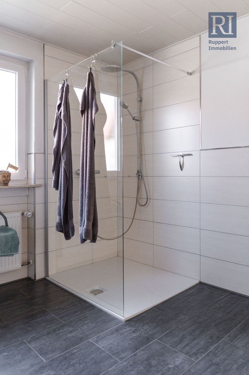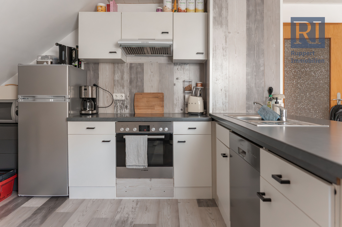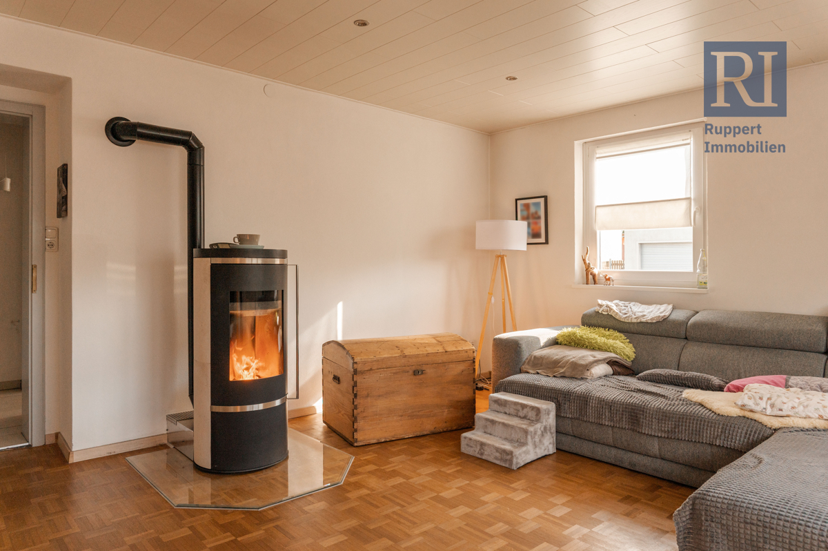 Das Herzstück der Wohnung ist das großzügige Wohnzimmer mit Pelletsofen, der insbesondere während der kalten Jahreszeit für eine gemütliche Atmosphäre sorgt. Nebenan befindet sich die Wohnküche, welche mit einer hochwertigen Einbauküche ausgestattet ist, und genügend Platz für einen Esstisch bietet. Eine kleine Speisekammer ergänzt die Küche und bietet Platz für Lebensmittelvorräte und mehr. Folgen Sie dem Flur in den hinteren Bereich der Wohnung, finden Sie auf der linken Seite zunächst das Kinder- oder Arbeitszimmer. Anschließend erwartet Sie das Schlafzimmer, welches ebenso wie das Wohnzimmer über einen Zugang zum Balkon verfügt. Im hinteren Bereich der Wohnung liegt das geräumige Badezimmer, das im Jahr 2016 saniert wurde und mit einer flachen Dusche mit Glastrennwand, einer großzügigen Badewanne und einem hochwertigen Waschtisch begeistert. Ein Hauswirtschaftsraum mit einer Erhöhung für Waschmaschine und Trockner sowie weiterem Stauraum macht die Hauptwohnung komplett.